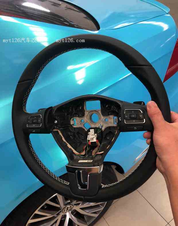 废话不多说,先上图 这是入手的带有换挡拨片的盘子,因为我的原车盘子是桃木,通过对比,可能看起来不如桃木的上档次,但是为了有拨片可以用,还是换了。之前给大家介绍过,曾经也亲自动手帮朋...