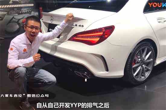自从自己开发排气系统之后呢,我就形成了一个习惯,就去各大车展,就会看一下那些长得漂亮的排气,看看它里面是怎么布局的,这是一台奔驰的cla45 AMG,你看他这个还去外面,这个套很漂...