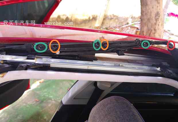 两周前换了顶棚布,剩下天窗遮阳板这块没有换,周末有时间了,搞起。拆这个遮阳板要把先天窗玻璃拆下来。第一步拆防尘罩。这是维修手册上的,看了半天没看懂,自己琢磨吧。不知道怎么拆下来了,...