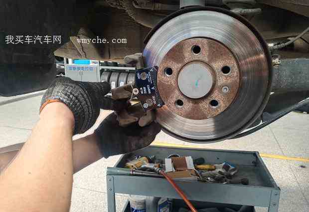 购车以来还没有换过刹车片,车子快行驶16万公里了,前几次保养店内人员都提醒该换了,趁着有一张材料8折券,决定给换了!前面两个刹车片还挺好的 ,还有一大半 ,后面的刹车片磨的快没有了...