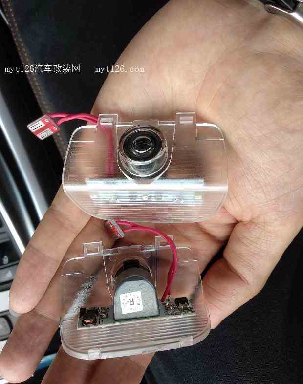 买车里东西时候发现个小玩意挺有意思 买来装下试试 就是投影门灯, 就先买两个试试效果 投影 安装很简单 撬开原灯壳露 出灯泡直接拔,别拧!有点热量,我开始还带了手套,事实证明首先灯...