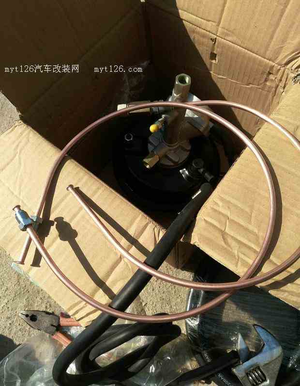 等了两三天,终于到货了。卖家专门配的粗铜管,比原车离合油管粗,因为有人反映用原车的回油慢,也就是离合回位慢。好不容易找到这个位置的螺丝,可以固定真空鼓。是进气歧管跟发动机连接的螺丝...