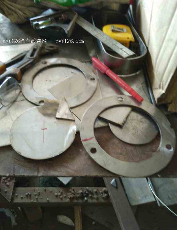 不锈钢法兰焊接中……焊接好的样子打造拉杆,大锤打成型侧面看上去感觉拉杆细了点制作完成,到车上比划比划自认一切美完,??注意,罗丝帽是十三的。安装参照羊友的改法,安装了个全铜阀门,空...
