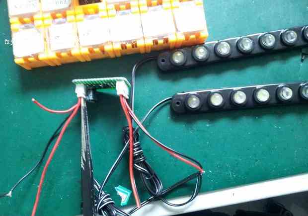在某宝淘得日行灯一对 三十元左右,一边十个5050 封装的LED 带凸镜,防水设计(事实证明这个设计不好,还是便宜没好货这个道理,大家懂的!)自制电源控制板一个,3A PMOS管一...