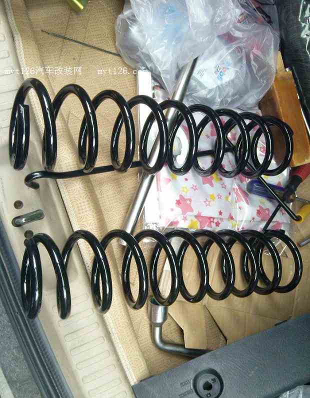 买的03年的老马一匹,屁 股塌了,周末买了弹簧自己换上,额的个神,屁 股一下就翘 起来了,太性感了。。。。。。!总共花去金钱+180,用时一共2小时40分左右新弹簧一对,,,请无视...