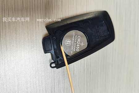车子驾驶中,中控出现遥控器钥匙电力不足的报 警显示,仪表盘出现黄色三角叹号。第一步,拆卸钥匙拆开车钥匙,看到遥控电池。 宝马遥控器电池为CR2450。使用一个牙签把电池直接翘出来。...