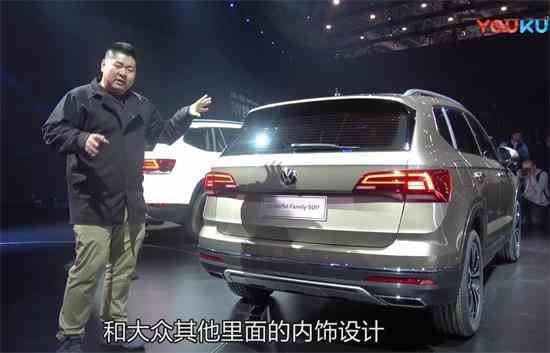 全新途锐的全球首发仪式,旁边有一台上汽大众的新suv,他怎么现在还没有中文名字,他牌子上写的是他说方便就是一个的家庭使用车型,还是有别的感觉,我我自己看这个是拿自己的眼睛看,大概是...
